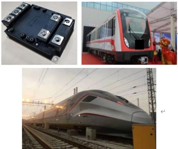 3300V 750A SiC功率模塊,可應用(yong)于軌(gui)道交通(tong)新(xin)一代牽(qian)引變流器(qi)技術(shu)平臺。采(cai)用(yong)自主(zhu)SiC MOS和(he)(he)SBD芯片(pian),結合本身優(you)異的(de)(de)材料(liao)特性,例如高(gao)擊穿(chuan)場強、寬禁帶(dai)間(jian)隙、高(gao)熱(re)導率等,使得其模塊產(chan)品相比于傳統(tong)IGBT模塊,具有更(geng)低的(de)(de)雜散電感、更(geng)快(kuai)的(de)(de)開關速度、更(geng)高(gao)的(de)(de)工作結溫(wen)等優(you)勢,在牽(qian)引變流器(qi)的(de)(de)應用(yong)中(zhong),顯著提高(gao)了系(xi)(xi)統(tong)的(de)(de)效率和(he)(he)功率密度,為裝(zhuang)置(zhi)和(he)(he)系(xi)(xi)統(tong)的(de)(de)小(xiao)型化(hua)、輕量化(hua)提供更(geng)優(you)的(de)(de)功率器(qi)件選擇。配合銀燒、超聲(sheng)端子(zi)鍵合、疊層母(mu)排等技術(shu)帶(dai)來(lai)的(de)(de)使用(yong)可靠性提升,備受新(xin)型智能軌(gui)交控制系(xi)(xi)統(tong)領(ling)域的(de)(de)青睞。該產(chan)品隨著技術(shu)成熟度的(de)(de)提升及生(sheng)產(chan)成本的(de)(de)降低,正(zheng)逐步向規模產(chan)品化(hua)的(de)(de)方(fang)向邁(mai)進。