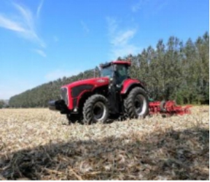 【成果簡介】 東方紅-LW3204 輪式拖拉機整機采用排放達非道路國三/國四環保柴油機、電液控制無級變速傳動系、閉心負荷傳感電控液壓提升系統、電液控制PTO、采用自主研發的組合數字儀表及性能監視系統、帶多功能扶手操縱臺的豪華舒適型駕駛室,車速涵蓋-25~0~40km/h,變速箱具有三種車速控制模式,發動機具有兩種工作模式,冷卻系統可根據發動機散熱需求自動調節。整機具有結構緊湊、技術密集、自動化程度高,各系統控制精準、操縱簡便,適應復雜多變工況,作業高效、節能、環保等優勢。東方紅-LW3204 輪式拖拉機為旱地農業一般用途,特別適用于大型農場的耕、耙、復式作業等重負荷作業,主要用于我國東北、內蒙古、新疆等以及其他國內外大型農場作業。