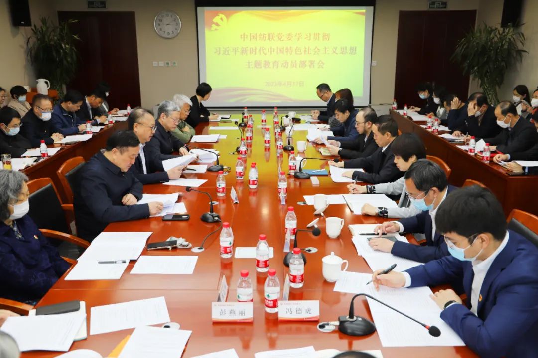 4月17日,中(zhong)國(guo)紡聯黨委召開學習貫徹習近平新時代中(zhong)國(guo)特色社會主義思想主題教(jiao)育動員部署(shu)會,對中(zhong)國(guo)紡聯全系統主題教(jiao)育進(jin)行(xing)動員安排。