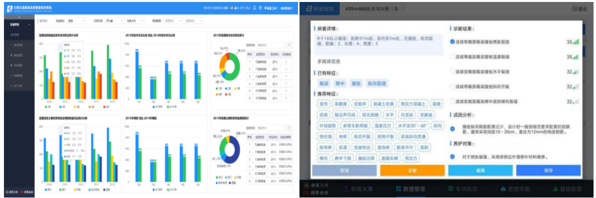招商路聯網“兩通一云”產品基于“公路檢養+互聯網”創新模式,并結合人工智能、大數據、物聯網等新一代信息技術構建,是目前國內業務最全、體系最強、應用最廣的檢養數字化產品。其中,道檢通(道路基礎設施智能檢測平臺)可實現公路及市政橋梁、隧道、邊坡、涵洞、交通工程定期檢測與施工監控等業務的智能化,提升檢測效率3倍以上;道養通(道路基礎設施智慧養管平臺)實現養護決策線、管理線、作業線三線合一,大幅提升管養效率;路安云(道路基礎設施聯網監測平臺)可實現橋梁、隧道、邊坡、建筑場館等大型結構物在線監測及預警,提升結構安全性。