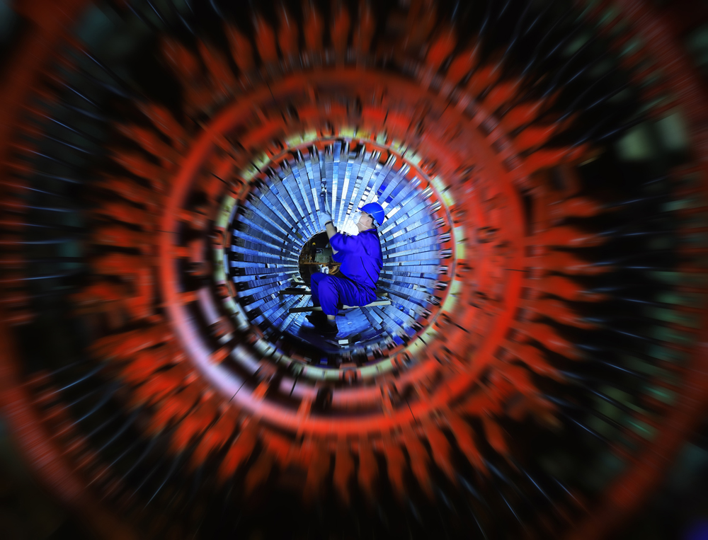 作品說明:一名(ming)技師正在對60W機(ji)組的發(fa)電機(ji)定子線圈進(jin)行認(ren)真檢查(cha)。