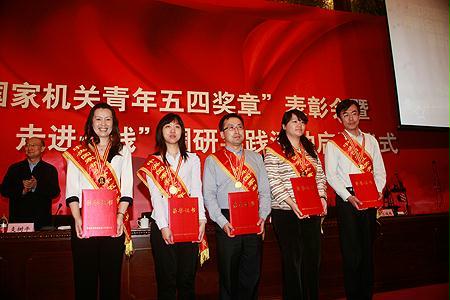 5月3日(ri)下午,中(zhong)(zhong)央(yang)國(guo)(guo)家(jia)機(ji)關(guan)(guan)(guan)工委隆重(zhong)舉行“中(zhong)(zhong)央(yang)國(guo)(guo)家(jia)機(ji)關(guan)(guan)(guan)青(qing)年(nian)五(wu)(wu)四(si)獎(jiang)(jiang)章(zhang)”表(biao)彰大會(hui)暨“根(gen)在(zai)基層 走進一(yi)線”調研實(shi)踐活動啟動儀式(shi)。我委財務監(jian)督與考核評價局企(qi)財一(yi)處處長(chang)王海琳同(tong)志(zhi)榮獲(huo)中(zhong)(zhong)央(yang)國(guo)(guo)家(jia)機(ji)關(guan)(guan)(guan)青(qing)年(nian)五(wu)(wu)四(si)獎(jiang)(jiang)章(zhang)標兵,外事(shi)(shi)局主任科員謝暉同(tong)志(zhi)榮獲(huo)中(zhong)(zhong)央(yang)國(guo)(guo)家(jia)機(ji)關(guan)(guan)(guan)青(qing)年(nian)五(wu)(wu)四(si)獎(jiang)(jiang)章(zhang)。馬凱、楊(yang)衍銀等領導(dao)同(tong)志(zhi)為獲(huo)獎(jiang)(jiang)代表(biao)頒(ban)獎(jiang)(jiang),丹華同(tong)志(zhi)與獲(huo)獎(jiang)(jiang)者所在(zai)單(dan)位及機(ji)關(guan)(guan)(guan)黨(dang)委負(fu)責(ze)同(tong)志(zhi)出(chu)席(xi)了(le)大會(hui)。祝國(guo)(guo)資委青(qing)年(nian)同(tong)志(zhi)們節日(ri)快(kuai)樂,讓青(qing)春在(zai)為國(guo)(guo)資監(jian)管和中(zhong)(zhong)央(yang)企(qi)業改革發展事(shi)(shi)業建功立業中(zhong)(zhong)煥發出(chu)絢麗光彩,以(yi)優異的業績迎接(jie)黨(dang)的十八大勝利召(zhao)開!