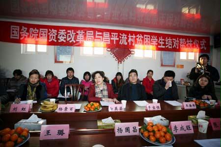 1月9日下午,國資委改革局黨支部書記白英姿帶領支部委員和團支部青年代表來到昌平區流村中心小學,看望了來自流村鎮7所小學的10名家庭經濟貧困學生,并代表全局黨員和青年同志為困難學生送去了愛心捐款和學習用品。